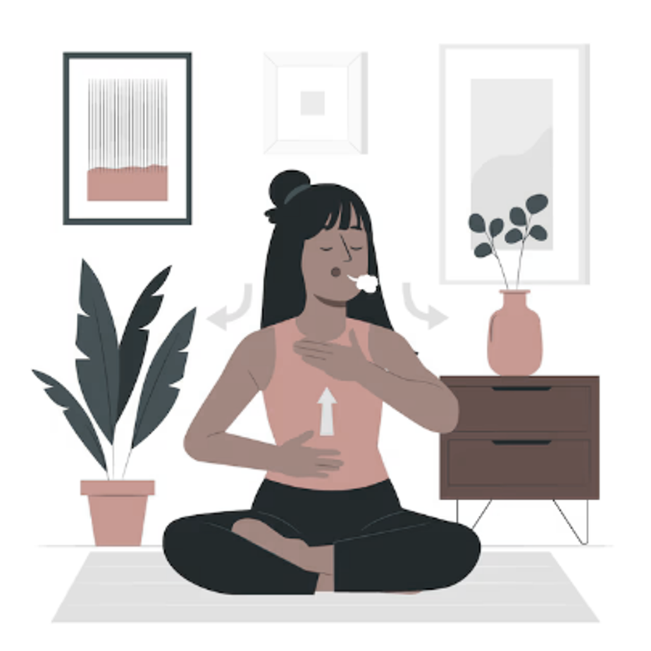 - Sense perdre la consciència dels peus, porta ara l’atenció a la RESPIRACIÓ amb la intenció de fer els cicles respiratoris més lents, més profunds i més conscients cada vegada. Pots imaginar que a l’agafar l’aire pel nas aspires el perfum d’una flor, el retens un momentet i desprès el treus per la boca lentament com si volguessis bufar una espelma amb suavitat… Pots posar la intenció d’inspirar agafant per a tu energia, força, vitalitat i espirar deixant anar el cansament, les tensions, la pressa, l’estrès… que portes acumulat. La respiració conscient et porta AL JO INDIVIDUAL: et fa autoconscient de l’ésser individual que tu ets, de l’existència pròpia.